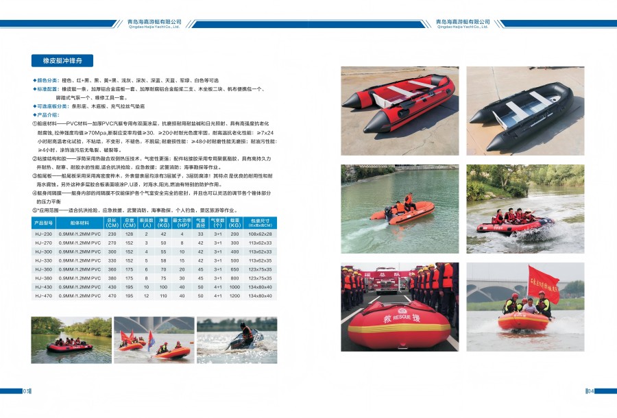 2、粘接結構和膠-----浮筒采用熱融合雙側熱壓技術,氣密性更強;配件粘接膠采用專用聚氨酯膠,具有高持久力并耐熱、耐寒、耐膠水的性能.適合抗洪搶險,應急救援;武警消防;海事勘探等作業。